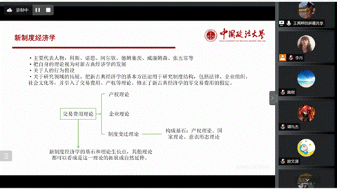 张群同学以对比旧制度学派同新制度经济学派的区别和联系为切入点,详细阐述了学者们对于“制度”定义的不同理解。接着从正式制度和非正式制度的视角出发,以金融监管中的上市制度改革为例,分析了影响制度变迁的因素。