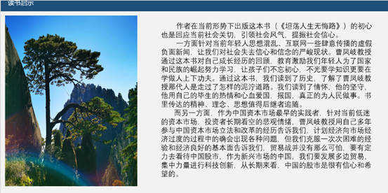刘志雄副经理最后进行了总结,他表示,中国证券市场的发展走过了几十年的风雨之路,曹凤岐教授生在旧社会,长在红旗下,发展和奋斗在改革开放中,作为中国证券业发展的实际见证人,经历了很多历史事件。《坦荡人生无悔路》一书,是曹凤岐教授七十余年生活、学习、研究、奋斗经历的系统总结,不仅能够从书中管窥中国社会变迁的历史,而且能够学到为人处世的道理,这本书栩栩如生地展示和还原了当时真实的历史情况。这些历史发展情况需要我们去进一步研究挖掘,并为未来发展之路提供理论借鉴。