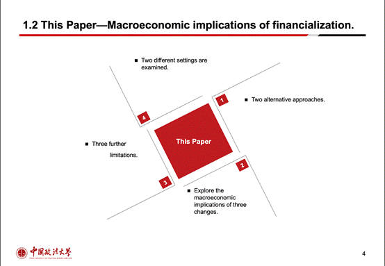 紧接着,21级金融专硕王庆华、朱学成和陈建锟,三位同学结合《Macroeconomic implications of financialisation》这篇文章探讨了以下三个方面问题:1.什么是金融化?金融化的具体表现包括哪些?2. 金融化对宏观经济环境的影响?3.在不同的模型中,关键金融化变量改变的影响?三位主讲人铺展文章、旁征博引,逐个攻破以上问题。