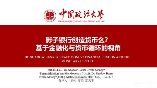 最后由夏天宇同学总结了影子银行与货币循环,以及本文的研究结论。由影子银行体系介导的信贷关系,既具有传统银行信贷的特点,又具有市场金融的特点。但从货币循环的角度来看,由于它们不能作为最终的结算手段,因此影子银行不能创造货币。反观前人的研究,格拉齐亚尼斯(Graziani)认为初始融资必须先于最终融资,这一表述仍然有效:影子银行业的债权积累在逻辑上依赖于传统银行业此前创造的货币债权。