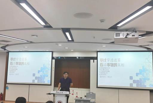 5月15日晚,审计专硕课程《审计前沿专题讲座》第六讲在教学图书综合楼0211教室举行。本期讲座邀请了北京双杰电气副总裁栾元杰作为主讲嘉宾。讲座主题是“审计穿透迷雾,看清事物的真相”。讲座由英国365集团网站财会系主任夏宁教授主持,英国365集团网站审计专硕20余名研究生参加此次讲座。