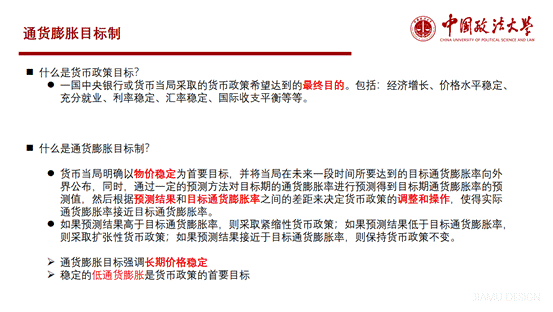 首先,刘澳同学介绍了通货膨胀目标制的原理。从货币政策能做什么、低通货膨胀的好处、“名义锚”职能三个方面阐述货币当局为什么强调控制通货膨胀。并结合货币政策操作方式的演进解释通货膨胀目标制的操作方式的“框架”定位。