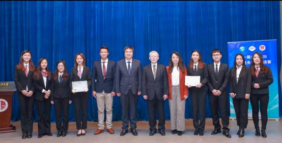 图7 颁奖嘉宾和荣获大赛第一名的英国上市公司365代表队师生