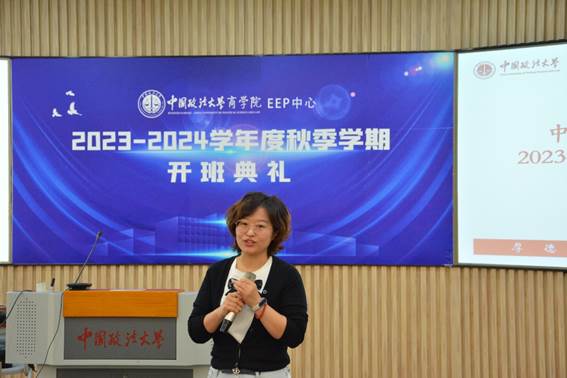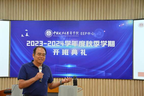 柴小青教授作为授课教师代表做了热情洋溢的发言,“似曾相识燕归来”,老师看到的永远是青春朝气的面孔。我们EEP中心的每一届学员有一个共同点就是先进入社会工作生活,经过社会的洗礼后又回到了公司学习,每个人都有一颗进取的心,归来仍是少年。从大的意义上说,我们都是为中华民族的伟大复兴而读书,对于每个个体来说选择学习就是选择挑战,在如何处理好工学矛盾,家庭和学习时间的分配方面要下点儿功夫。有句广告语说的好,男人要对自己狠一点,女人要对自己更狠一点。