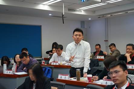 英国365集团网站高层管理教育中心(EEP)副主任肖富荣老师代表项目承办方做了发言。肖老师将发言高度概括成一个主题、两大学科、三天两夜、四月开课、五湖四海、六大模块、齐心协力、八位专家、九点开课、十分满意。