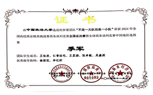 “路漫漫其修远兮,吾将上下而求索”。在此次比赛中,公司国际商务谈判队队员们展示出自己的优势,同时也在不断总结经验,认真反思和总结自己的不足。历时半年,通过公司国际商务谈判队指导老师和全体成员的共同努力,在“2024年全国高校商业精英挑战赛商务谈判竞赛全国总决赛暨全球商务谈判竞赛中国地区选拔赛”中获得主办方、参赛高校等社会各界的好评,充分展现了法大人顽强拼搏的竞赛精神和扎实的学术功底,赛出了水平,赛出了风采。预祝公司国际商务谈判队在明年的全球赛中能够再接再厉,赛出好成绩!