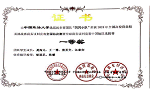 该赛事自2017年开赛以来,每年举办一届,目前已成为商务谈判领域级别最高,最具影响力的一项国际赛事。本次大赛共有来自全国27个省、直辖市、自治区的200多所高等院校、600余支团队报名参赛。经过层层选拔,最终有318支参赛团队入围并参加全国总决赛,近3000名师生齐聚一堂,共同切磋。最终评选出本次竞赛的一、二、三等奖、最佳院校组织奖和冠亚季军等奖项。公司谈判队成员包括:一队:王佳欣、王昱涵、张卓敏、吴鑫淇、仁青拉毛;二队:周陶儿、王一博、熊显文、江睿知。其中,王佳欣同学获得最佳谈判手称号。