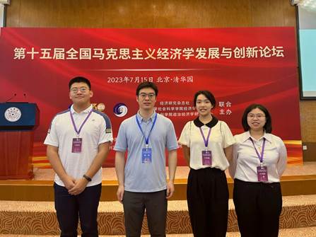 2023年7月15日,第十五届全国马克思主义经济学发展与创新论坛在清华大学举行。本届论坛由经济研究杂志社、清华大学社会科学公司经济学研究所和清华大学政治经济学研究中心联合主办,主题为“中国特色社会主义基本经济制度的完善与中国特色社会主义政治经济学的历史使命”。经济系副教授熊柴与经济2001班本科生庄梓琪、王轶尧作为两篇入选论文的作者参会,经济2001班本科生匡韵逸获批旁听学习。本届论坛共收到近170篇论文,经主办方评审参会53篇。